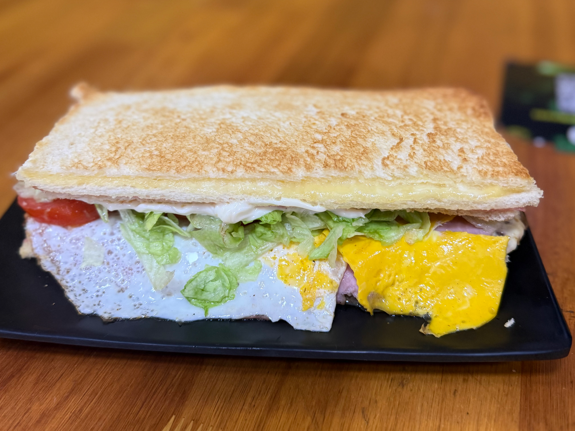 Pan de miga, mayo casera, carne,jamón ,queso,lechuga, tomate, huevo, + papas fritas